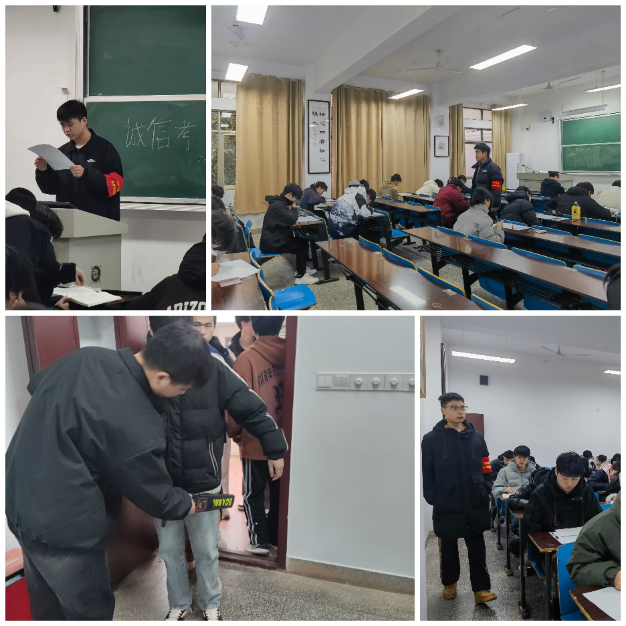 学院党委副书记郭屹、副院长孙广臣亲自带队,率领全体辅导员深入一线,开展巡考工作。与此同时,研究生党员积极响应学院号召,以高度的责任感和使命感投入监考工作。监考过程中,研究生党员与监考老师紧密配合,考前共同宣读《学生手册》中关于考试纪律的相关规定,仔细检查考生所携带的个人物品,严格核对考生信息,确保无一疏漏。研究生党员始终坚守岗位,时刻关注考场内的每一处动态,维护考试纪律。