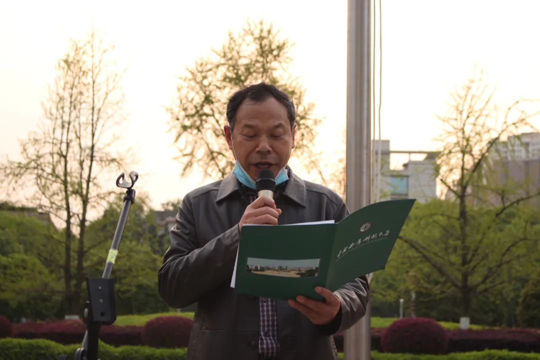 学院党委书记陈鹤梅在升旗仪式上进行了讲话。他指出,作为新时代青年的我们,生逢盛世,肩负重任,要在新征程上立下“鸿鹄志”、练就“铁肩膀”、当好“接班人”,争当“青年先锋”,在劈波斩浪中开拓前进,在披荆斩棘中开辟天地。