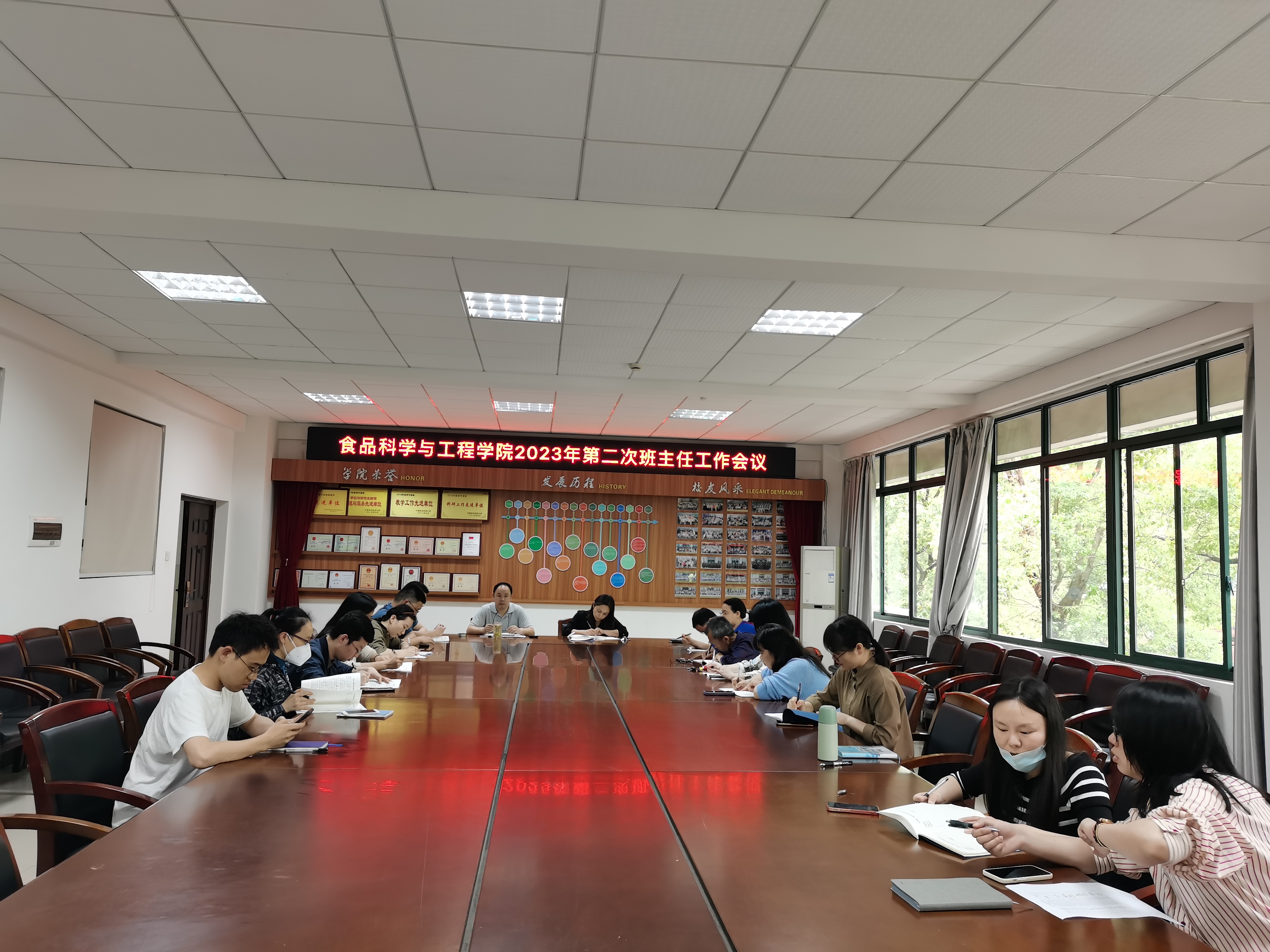 4月19日下午,食品科学与工程学院在神农楼A206会议室召开了2023年度第二次班主任工作会议。学院党委书记李婷、党委副书记潘晓杰、全体班主任以及辅导员出席会议。